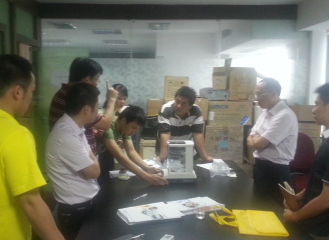2013年8月15日上午,廣州深華公司邀請了賽多利斯公司的崔經(jīng)理到我們公司,給我們公司的銷售人員進(jìn)行賽多利斯新系列的電子天平產(chǎn)品培訓(xùn)以及產(chǎn)品研討會。