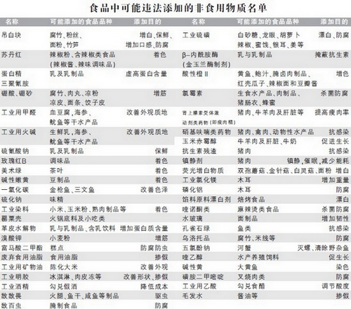 47種食品非法添加物集中公布 其中24種尚無檢測方法