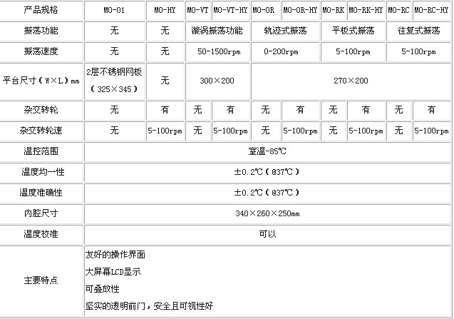 MO系列多款功能各異的培養(yǎng)箱可供實驗人員選用,可具備雜交、多種振蕩功能,溫度均一性好,采用數(shù)顯微處理器控制,結構緊湊且可疊放。